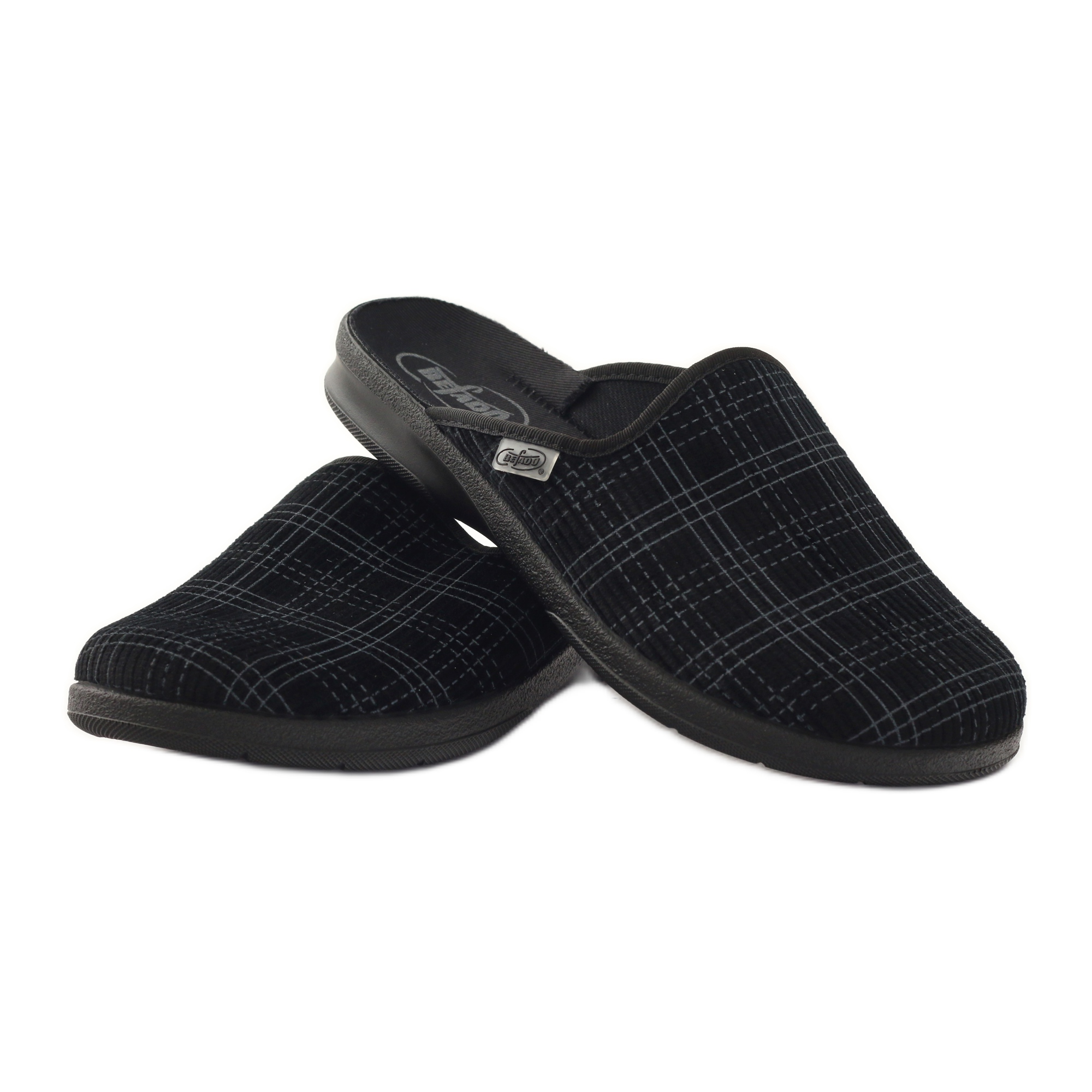 Papucii Befado 548m003 în carouri în negru și gri sunt o alegere perfectă pentru bărbații care apreciază confortul și stilul. Produși de renumita companie poloneză Befado, acești papuci slip-on sunt perfecti atât acasă, cât și în curte.