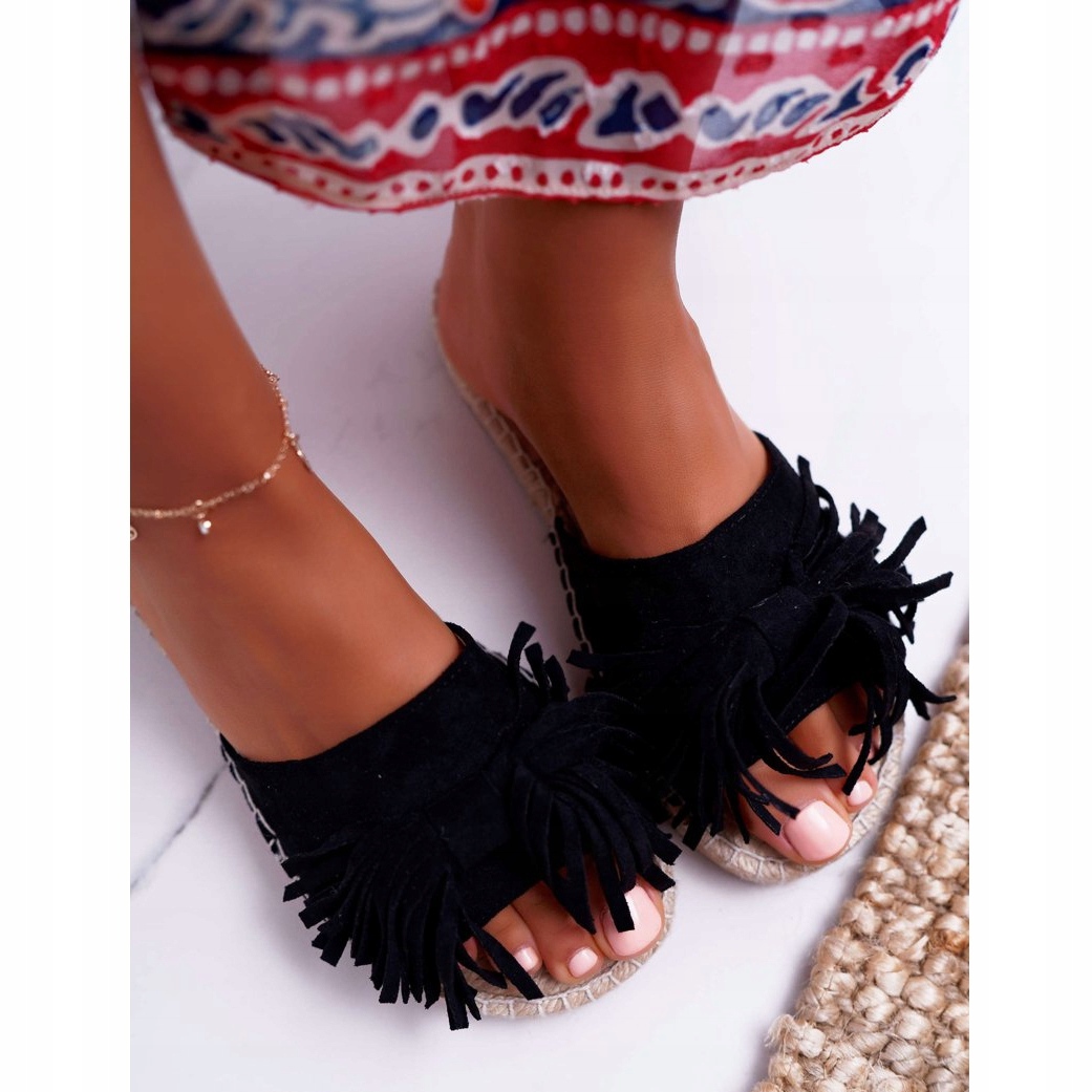 Șlapii Black Boho Vices 8458 pentru femei sunt alegerea perfectă pentru toate femeile care caută încălțăminte confortabilă și elegantă de zi cu zi. Realizate din materiale de înaltă calitate, combină tendințele cu moda și funcționalitatea boho. Stilul lor unic atrage atenția datorită franjurilor subtile care adaugă caracter, iar talpa împletită garantează nu numai estetica, ci și confortul la purtare.