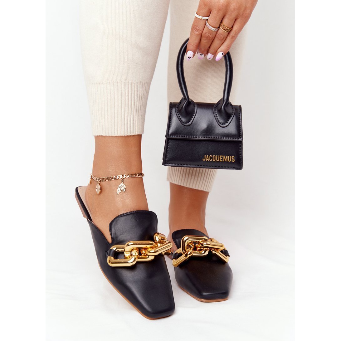 Detalii: PS1 Papuci negri Call On Me cu partea superioară și lanț negru de aur