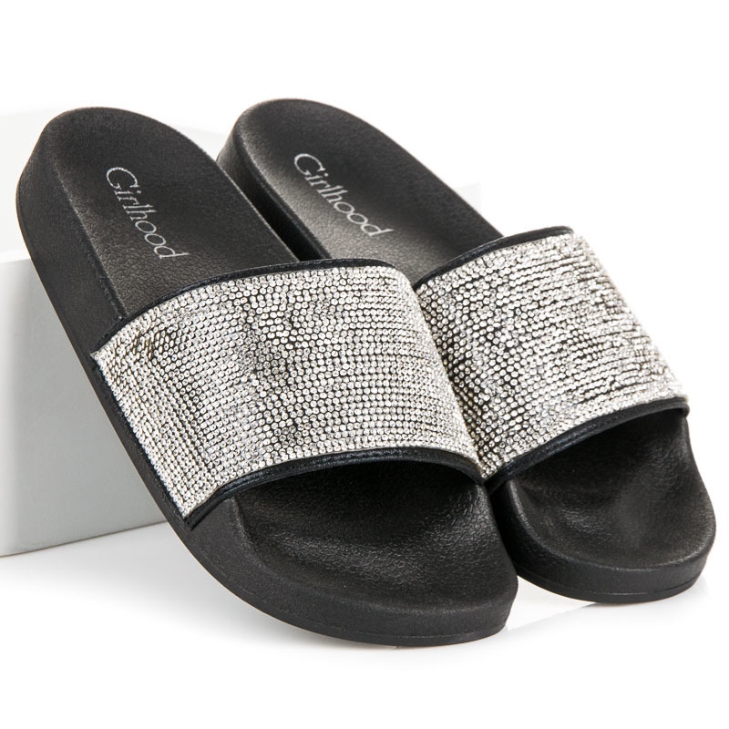 Descoperiți eleganța și confortul cu toboganele negre cu cristale de la Girlhood. Acești șlapi unici sunt alegerea perfectă pentru femeile care doresc să îmbine confortul cu stilul la modă în fiecare zi. Cu o înălțime a platformei de 2,0 cm, oferă o stabilitate și un sprijin excelent, fără a sacrifica aspectul feminin.