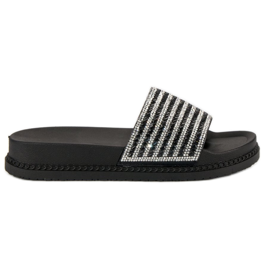 Descoperiți șlapi negri extraordinari cu cristale de la Inna Marka, care se potrivesc perfect stilului tău de zi cu zi. Acești șlapi eleganti, dar casual, sunt o alegere perfectă pentru fiecare femeie care dorește să combine confortul cu un pic de strălucire.
