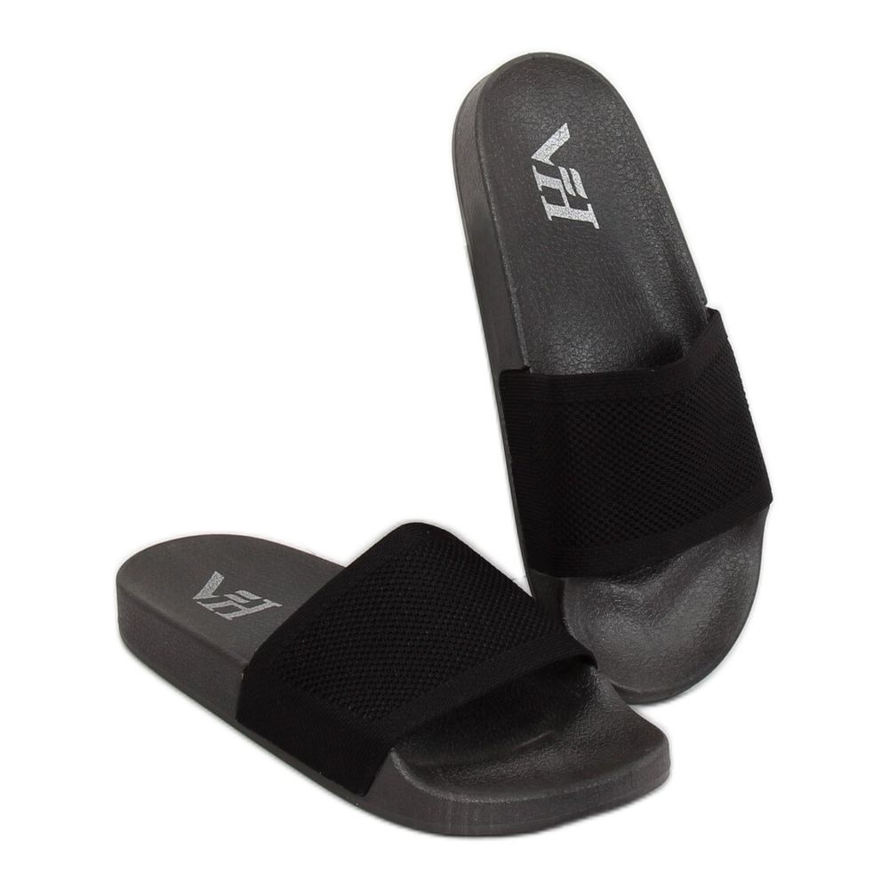 Detalii: Papuci negri cu curea tricotată PT-110 Negru