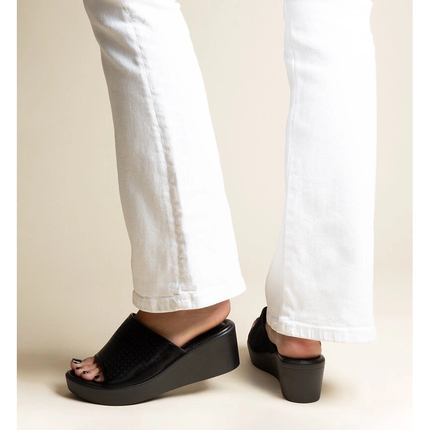 Black Openwork Flip Flops pe o pană din piele eco Garvin este o alegere excelentă pentru zilele de vară, care combină confortul cu designul modern. Fabricate din piele ecologică de înaltă calitate, nu sunt doar revoluționare în stilul lor, ci și ecologice. Tăierea medie cu o înălțime de 6 cm asigură stabilitatea și confortul purtării, ceea ce le face încălțăminte perfectă în fiecare zi.