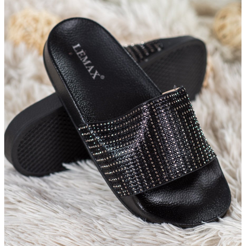 Detalii: Lemax Papuci negri cu zirconiu cubic negru