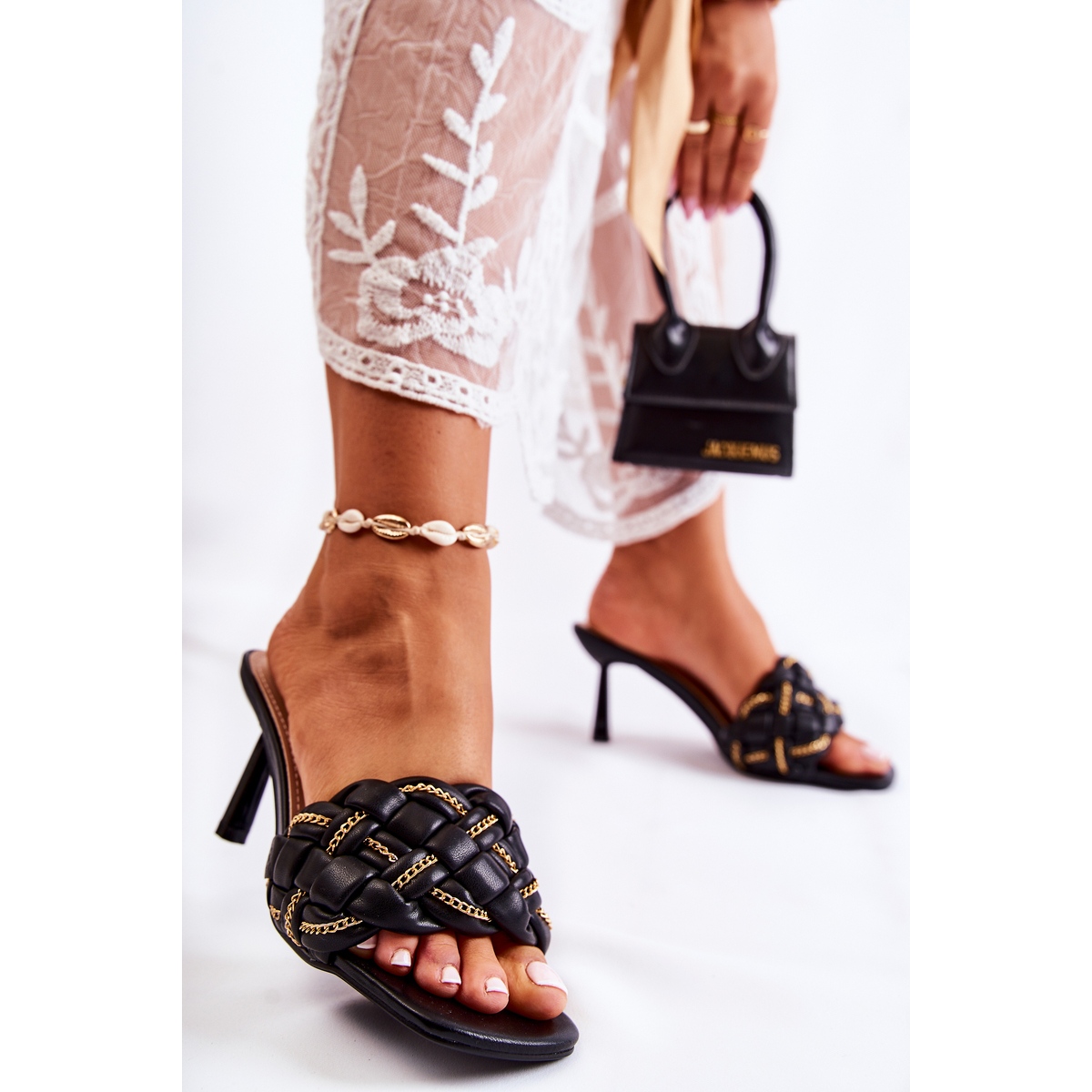 Flop -urile elegante și feminine sulea sunt o propunere pentru iubitorii de pantofi la modă și confortabili pentru primăvară și vară. Fabricat din piele ecologică de înaltă calitate, cu un front țesut decorat cu un lanț subtil, subliniază frumos piciorul și adaugă stilul de stil. Nasul descoperit, pătrat, oferă un personaj modern, iar știftul subțire prelungește optic picioarele - ideale pentru rochii, fuste sau blugi eleganți.