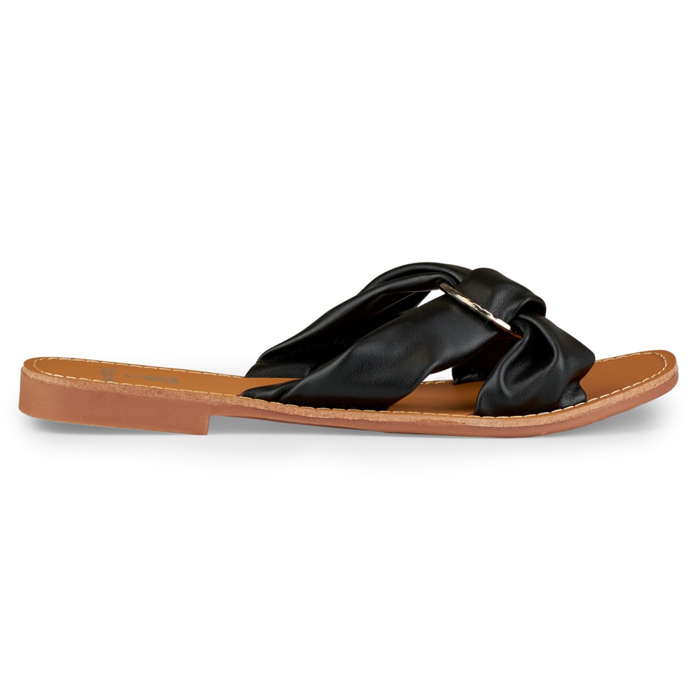Pantofii negri au un toc plat de 1 cm inaltime, ceea ce ii face extrem de confortabil de purtat pe tot parcursul zilei. Degetul deschis și închiderea cu alunecare le fac ușor de pus și scos, făcându-le o alegere practică pentru utilizarea de zi cu zi. Designul elegant și minimalist le face să se potrivească perfect pentru multe stiluri de vară - de la casual la mai elegante.