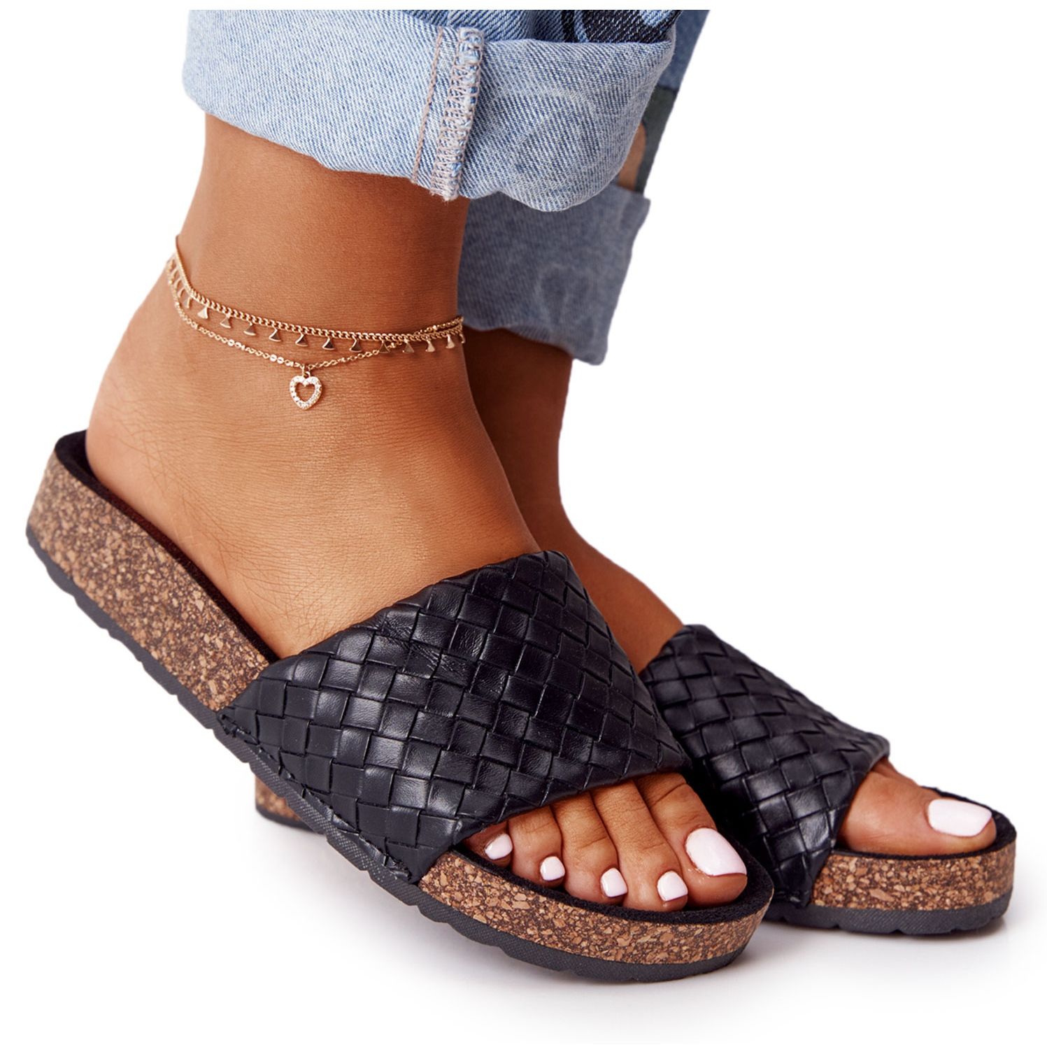 Faceți cunoștință cu șlapii unici MSMG din piele pentru femei, cu talpă din plută, într-o culoare clasică neagră. Acești șlapi eleganti sunt fabricați din piele ecologică de înaltă calitate, ceea ce le face atât elegante, cât și ecologice. Datorită inserției profilate, oferă un confort excelent la purtare, perfect pentru utilizarea de zi cu zi.