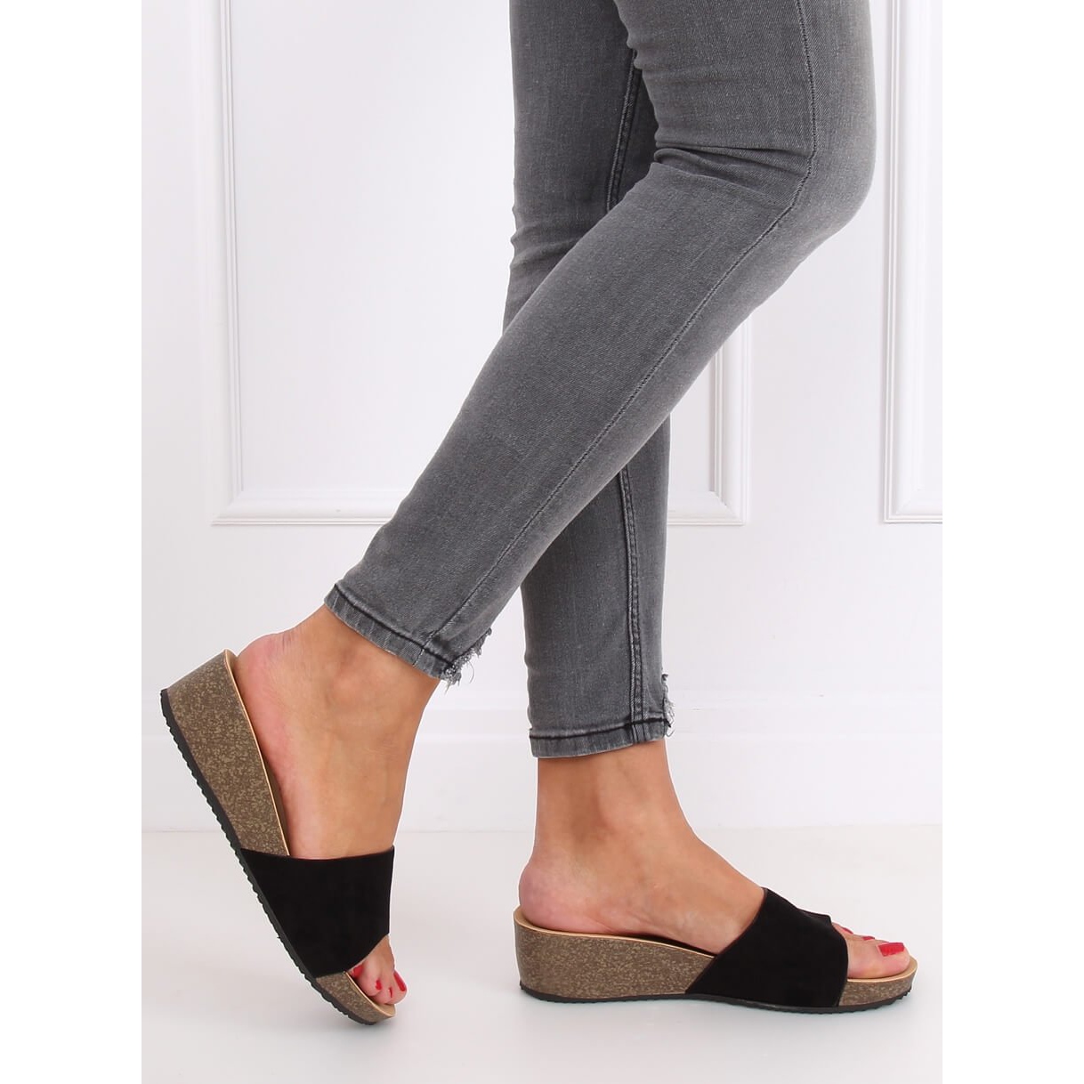 G186P Sandalele negre cu pană sunt alegerea perfectă pentru femeile care apreciază confortul și un aspect la modă. Fabricate din piele de căprioară ecologică de înaltă calitate, aceste tobogane elegante sunt perfecte pentru zilele de vară, adăugând stil oricărei ținute casual. Cu o pană de plută înaltă de 5 cm, oferă echilibrul perfect între confort și eleganță.