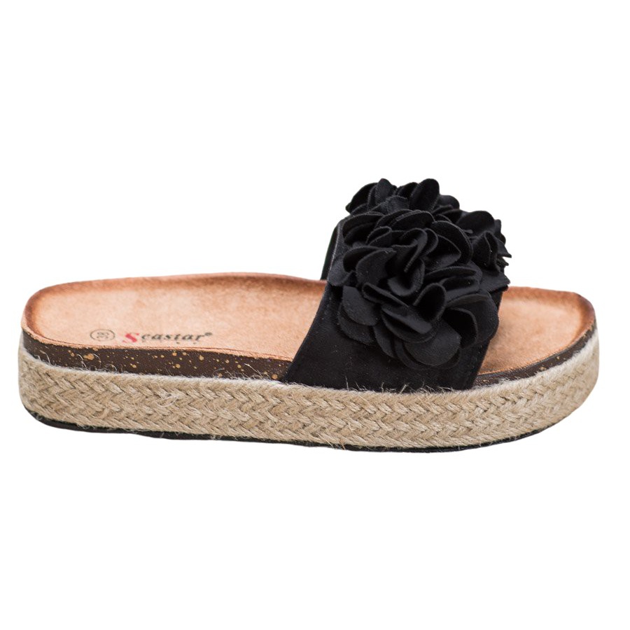 Șlapii Seastar se remarcă prin culoarea neagră atrăgătoare și prin materialul exterior din piele de piele ecologică de înaltă calitate, care asigură un aspect elegant și o potrivire excelentă la orice stil. Închiderea deschisă și lipsa degetelor vă permit picioarelor să respire liber, ceea ce este deosebit de important în zilele caniculare.
