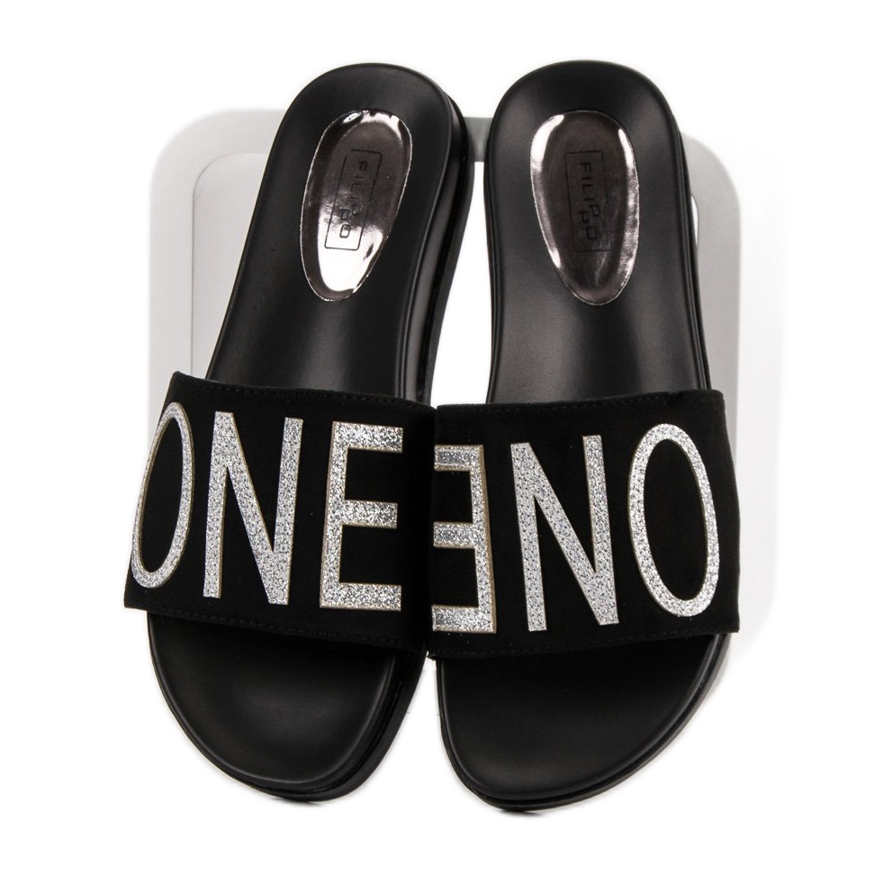 Filippo Czarne Klapki One este alegerea perfectă pentru fiecare femeie care caută șlapi confortabili și stilați de zi cu zi. Cu o culoare neagră clasică și litere distinctive, acești șlapi vor însufleți cu siguranță orice ținută adăugând un pic de modernitate.