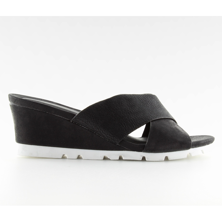 Detalii: Papuci negri pe o pană joasă neagră Y-8219 negru