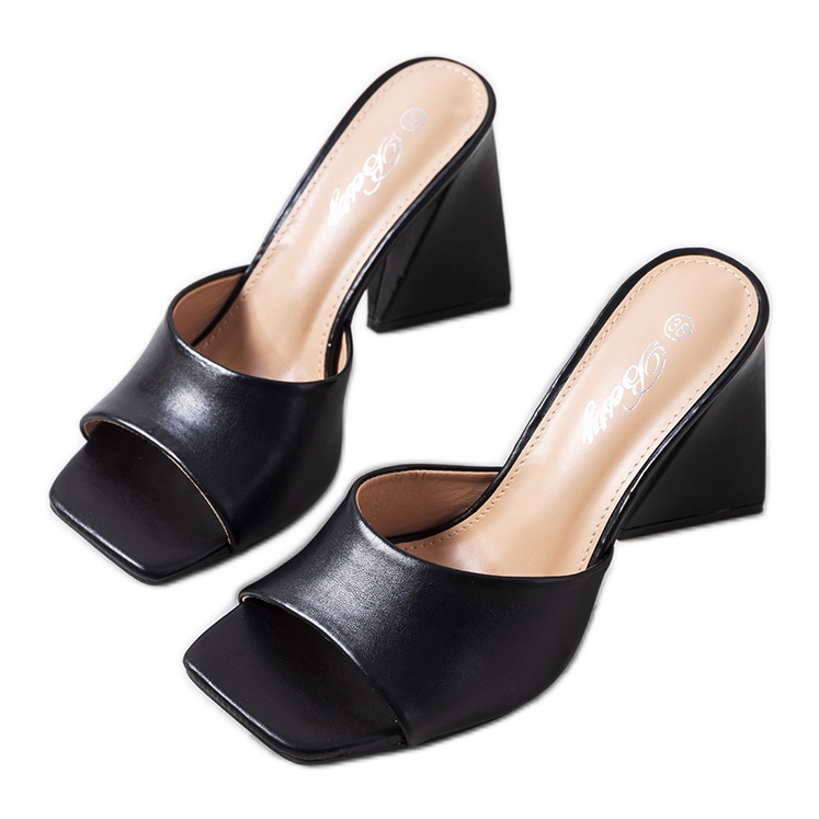Mulți negri cu toc Istila sunt un must-have absolut în această vară, care vor adăuga caracter oricărui stil de vară. Fabricate din piele ecologică de înaltă calitate, în negru clasic, combină eleganța cu confortul. Forma originală a tocului de 9,5 cm este atrăgătoare și face ca acești șlapi să fie alegerea perfectă pentru diverse ocazii - de la plimbări pe străzile orașului la petreceri de vară.