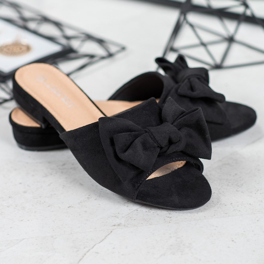 Detalii: SHELOVET Papuci negri pe toc plat negru