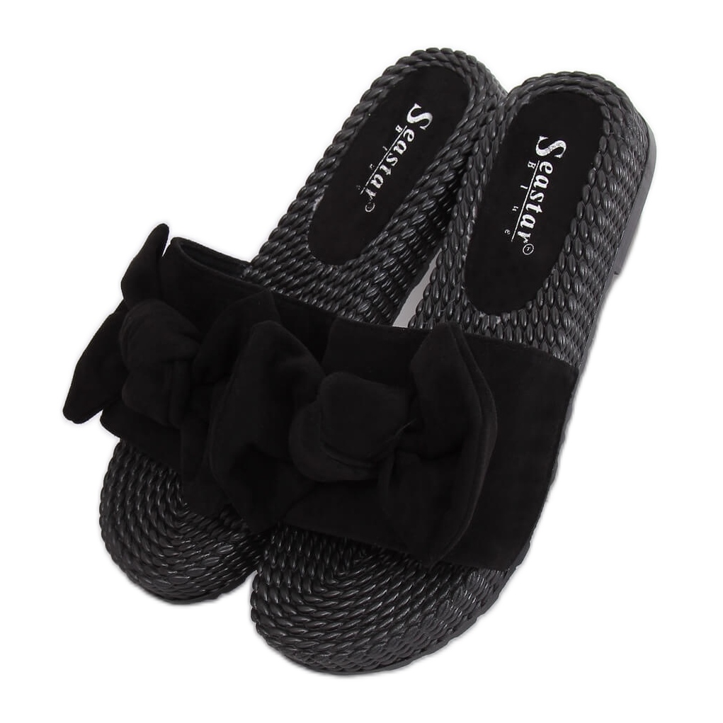Inna marka Papuci de damă negri cu arc YQ225P Negru