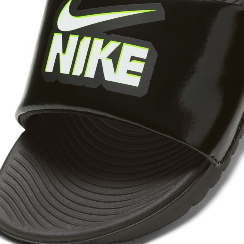 În plus, șlapii au tăieturi ondulate, flexibile în talpa exterioară, care permit piciorului să se miște în mod natural, ceea ce este extrem de important, mai ales pentru copiii activi. Șlapii sunt disponibili într-o culoare neagră elegantă, cu logo-ul caracteristic Nike, ceea ce îi face să se potrivească perfect cu orice stil de vară.
