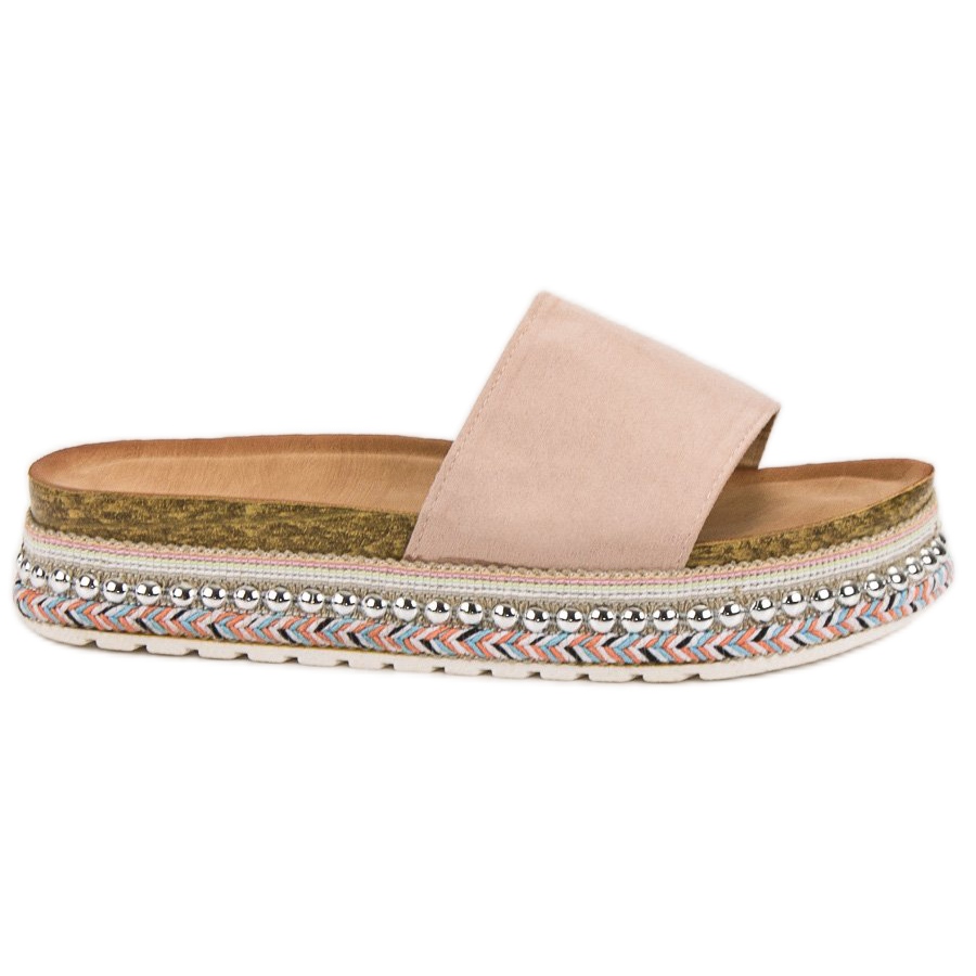 Acestea sunt șlapi cu platformă la modă de la Cm Paris, care vor adăuga prospețime garderobei tale de vară. Confectionate din piele intoarsa ecologica de inalta calitate, de culoare maro deschis, sunt o optiune ideala pentru zilele calduroase. Datorita platformei joase, inaltime de 4 cm, sunt confortabile de purtat, ceea ce le face o alegere perfecta atat pentru plaja cat si pentru stilul urban.