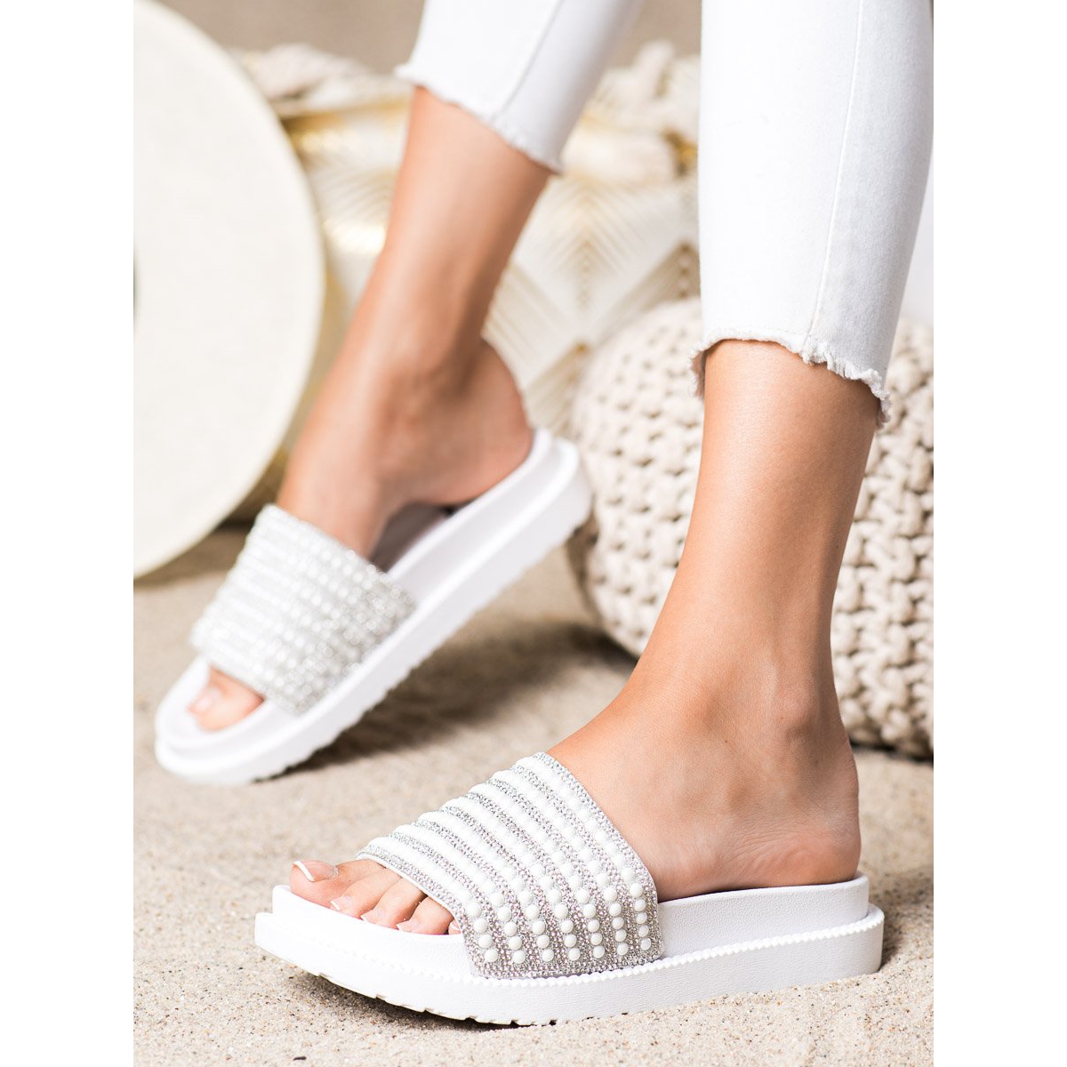 SHELOVET SHELOVET Papuci Pe Platforma Cu Zirconiu Cubic alb