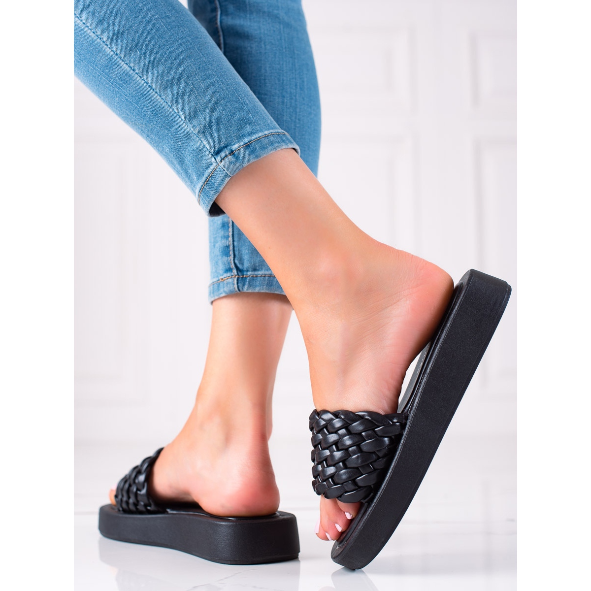 Caracteristica distinctivă a acestor șlapi este platforma lor plată, înaltă de 3 cm, care nu numai că adaugă o ușoară creștere, dar asigură și stabilitate și confort la fiecare pas. Închiderea deschisă le face ușor de pus și scos, făcându-le o alegere excelentă pentru zilele caniculare.