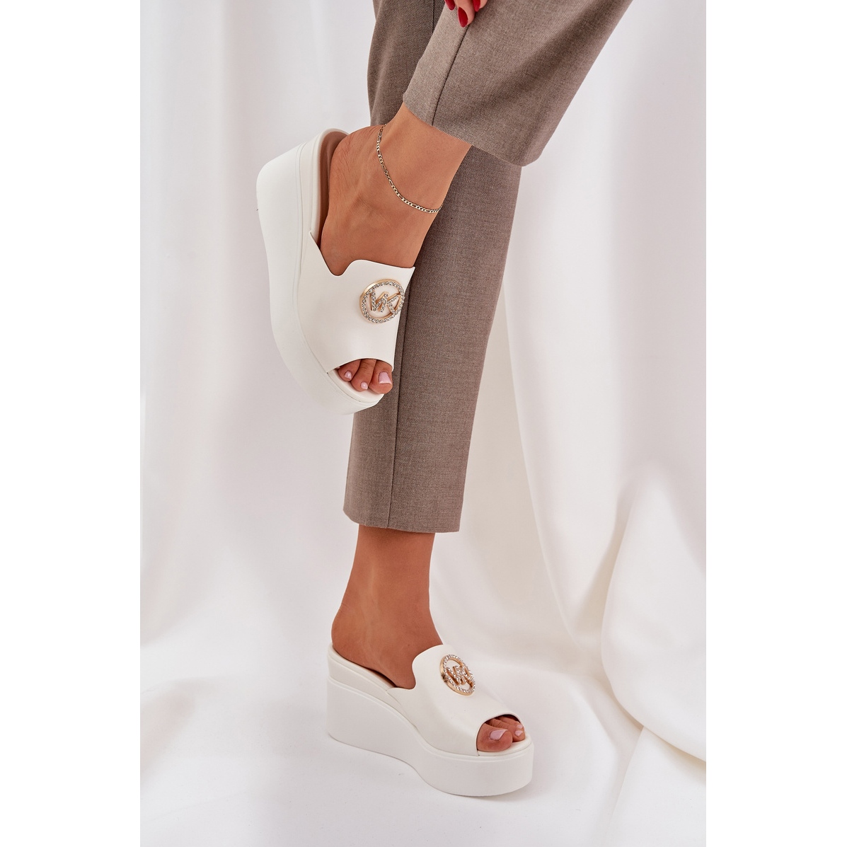 Inna marka Papuci pe platformă și pene cu un ornament alb