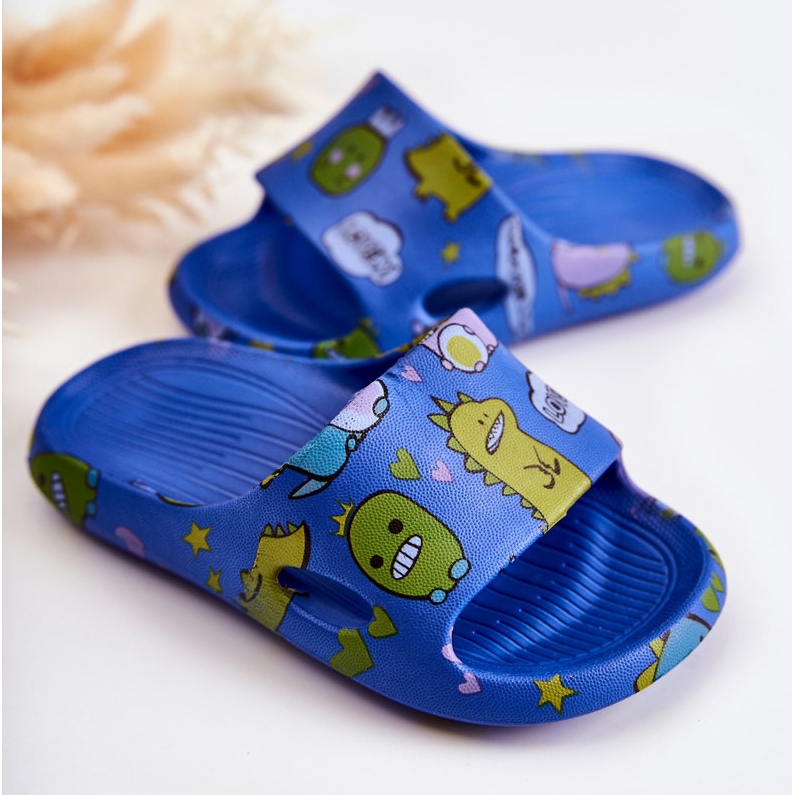 Oferim papuci unici pentru copii WJ1 care incanta nu doar prin aspectul lor, ci si prin confort extraordinar la purtare. Acești șlapi, în frumoase culori albastre, sunt împodobiți cu un motiv vesel de dinozaur, care cu siguranță va atrage orice mic fan al acestor reptile preistorice.