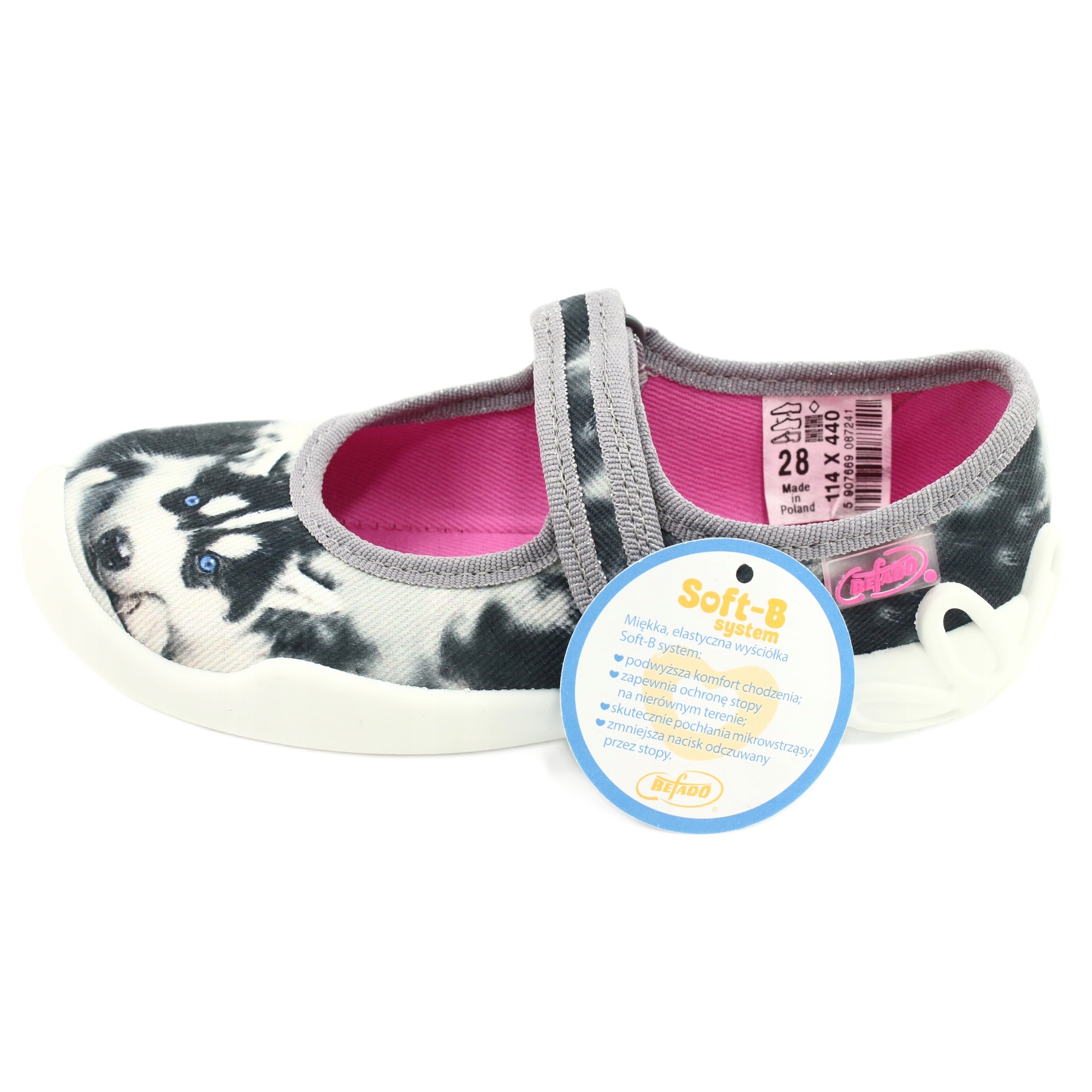 Detalii: Papuci pentru copii Befado 114x440 colorat cu aplicarea câinilor alb