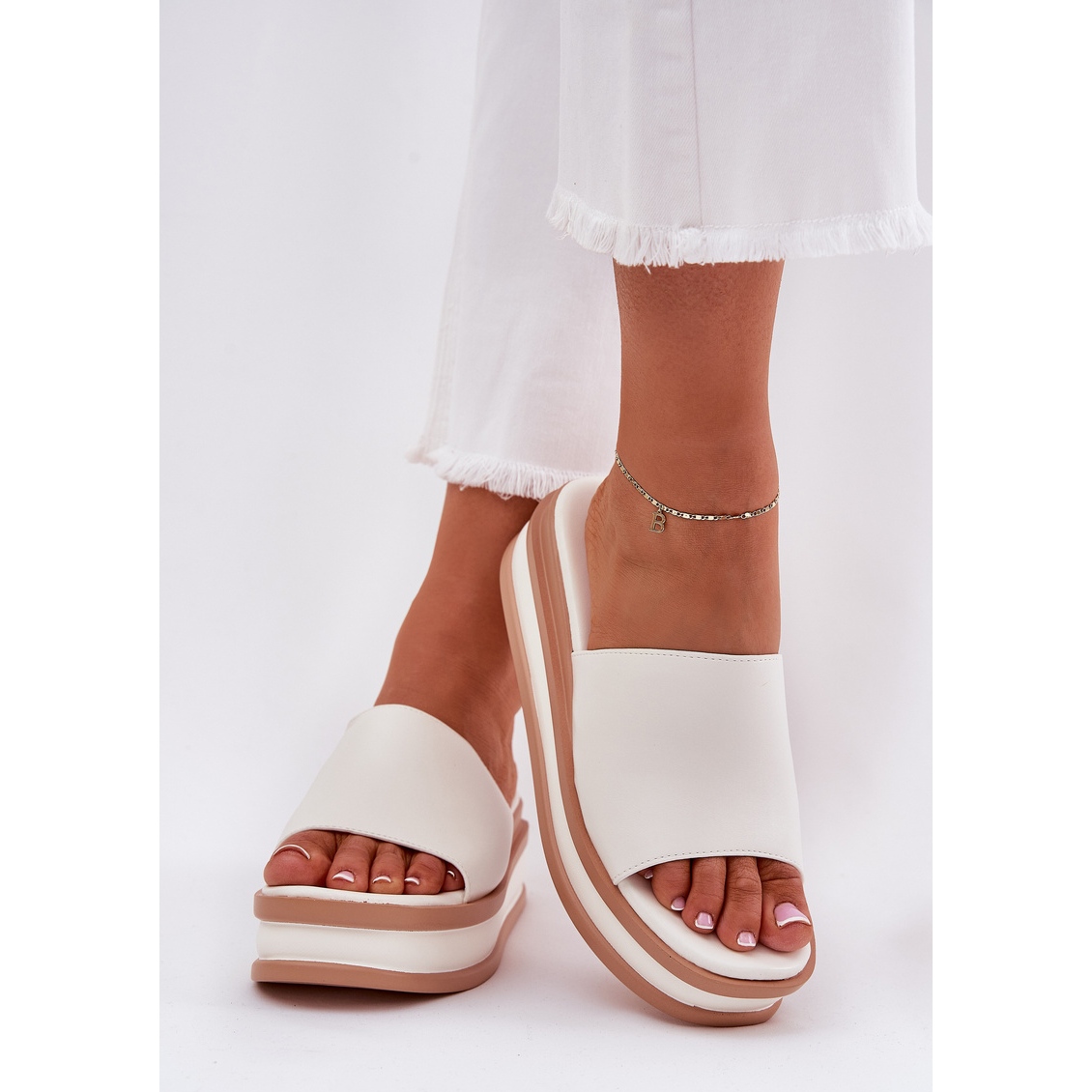Subliniați -vă stilul vara cu clapele clasice pentru femei pe platformă și pană albă! Fabricate din piele ecologică de înaltă calitate, aceste flip -flop -uri sunt combinația perfectă de eleganță și confort. Datorită unei platforme solide, cu o înălțime de 4 cm și o înălțime ridicată, acestea oferă nu numai stabilitate, ci și extensie optică a picioarelor.