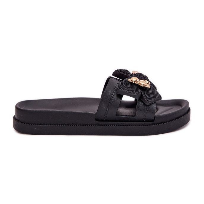 Detalii: Papuci pentru femei cu arc și o broșă de aur negru