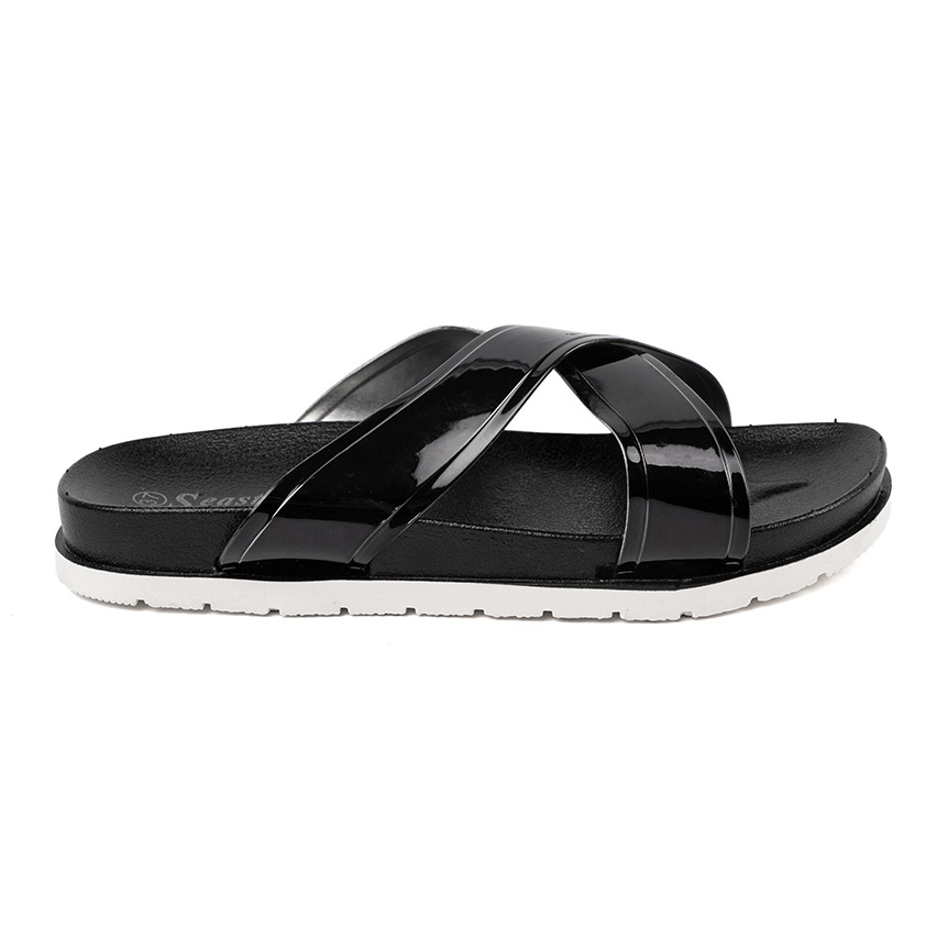 Detalii: Seastar Papuci pentru femei negre cu dungi lăptate negru