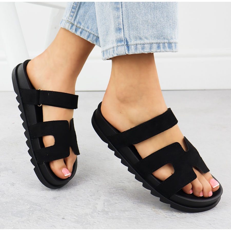 Set pe o platformă stabilă de 2,5 cm grosime, acestea oferă nu numai purtând confort, dar adaugă și o înălțime subtilă. Papucii sunt confecționate din țesătură de înaltă calitate, iar căptușeala lor interioară din țesătură moale și inserție de spumă garantează confort în timpul întregii zile. Lipsa unui nas le face aerisite și perfecte pentru zile calde.