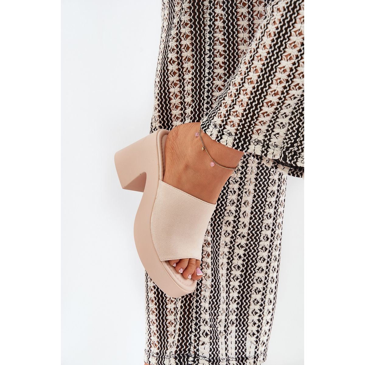 Detalii: Papuci pentru femei pe postare și platformă bej
