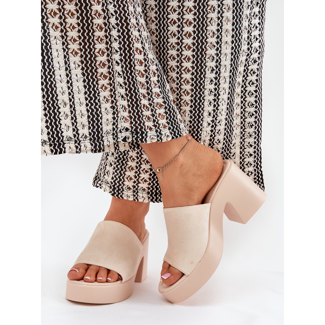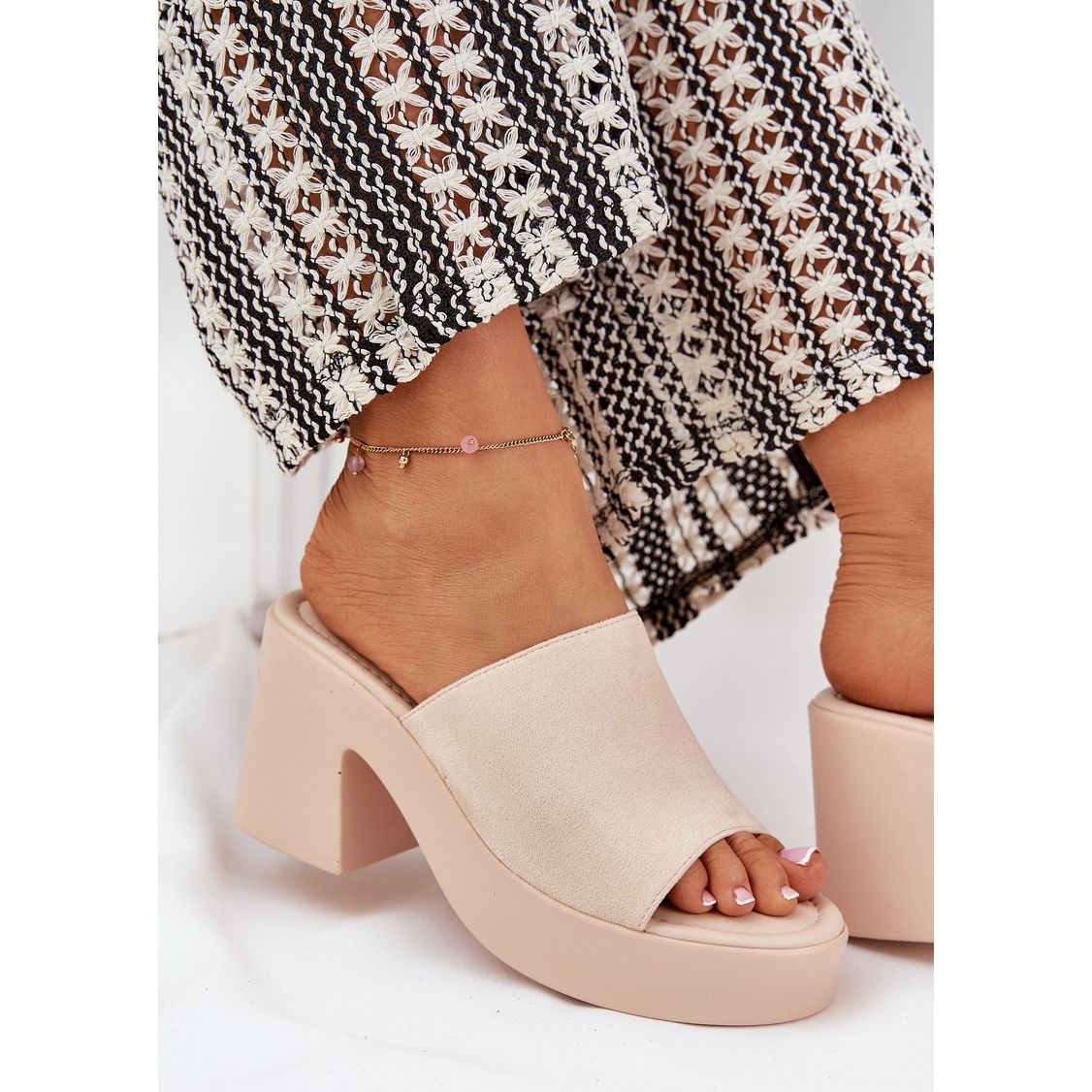 Inna marka Papuci pentru femei pe postare și platformă bej