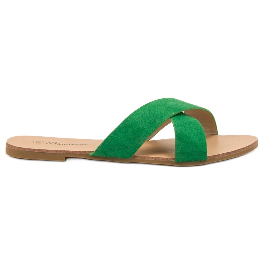 Descoperiți eleganța verii cu șlapii Primavera, care combină designul minimalist și stilul modern. Acești șlapi plati unici, într-o nuanță atrăgătoare de verde, vor fi o completare perfectă pentru orice stil de zi cu zi.