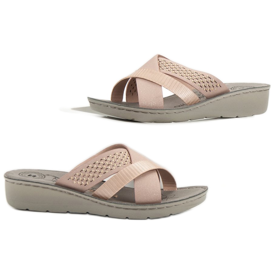 Va prezentam slapi de dama trandafiri fenomenali de la brandul Evento, care sunt alegerea perfecta pentru zilele de vara. Acești pantofi fermecați combină confortul și estetica, iar frumoasa lor culoare roz va adăuga prospețime oricărui stil. Flip-flops au o pană delicată de 4 cm înălțime, care nu numai că le face să arate atractive, dar și optic alungește și subțiază picioarele.