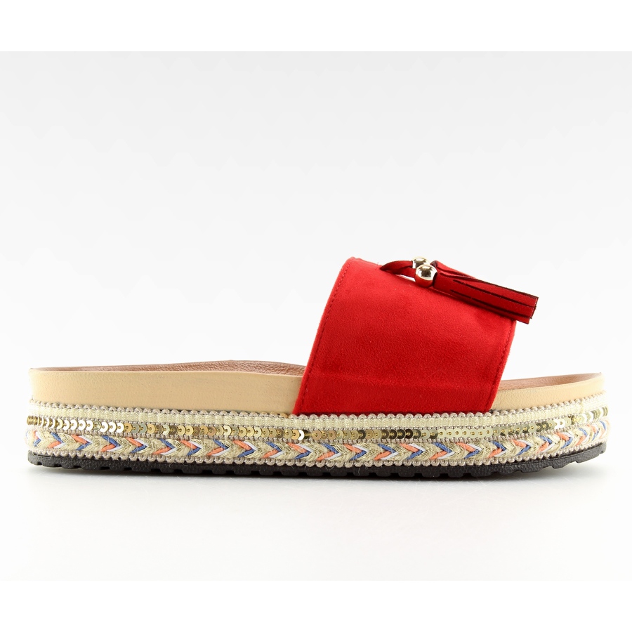Pregătește-te pentru vară cu șlapi roșii LS-93 roșii pentru femei! Acești șlapi la modă se caracterizează printr-o talpă înaltă, profilată, care nu numai că aduce un plus de stil, dar asigură și confort atunci când sunt purtate. O singură privire este suficientă pentru a te îndrăgosti de farmecul lor - decorațiuni originale pe talpă și ciucuri fermecați atrag atenția și conferă pantofilor un caracter unic.