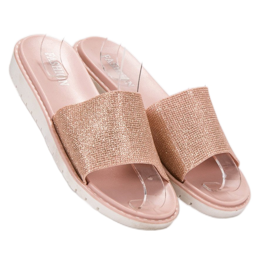 Vă prezentăm șlapi maro strălucitori la modă de la brandul Fashion, care sunt alegerea perfectă pentru zilele mai calde. Acesti papuci de dama unici se remarca prin designul lor elegant, decorat cu zirconi minuscule care le confera o stralucire unica. Datorită lor, fiecare stil de vară va câștiga un nou caracter și expresivitate.