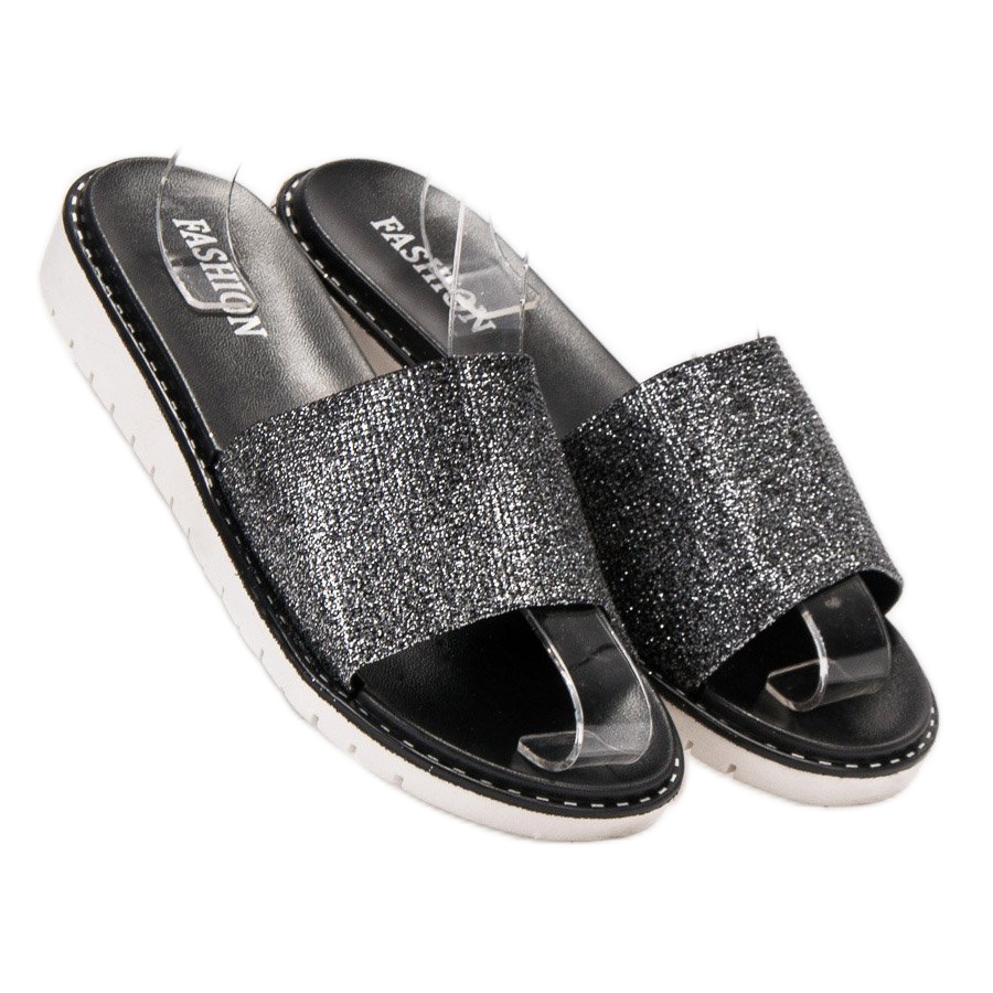 Flip-flops la modă Shiny Black de la brandul Fashion sunt alegerea perfectă pentru fiecare femeie care vrea să iasă în evidență în stilul de vară. Acești șlapi eleganti și negri combină stilul și confortul, făcându-le un accesoriu perfect de zi cu zi. Designul lor atractiv este subliniat de decorațiuni sub formă de mici zirconi, care conferă pantofilor o strălucire incredibilă.