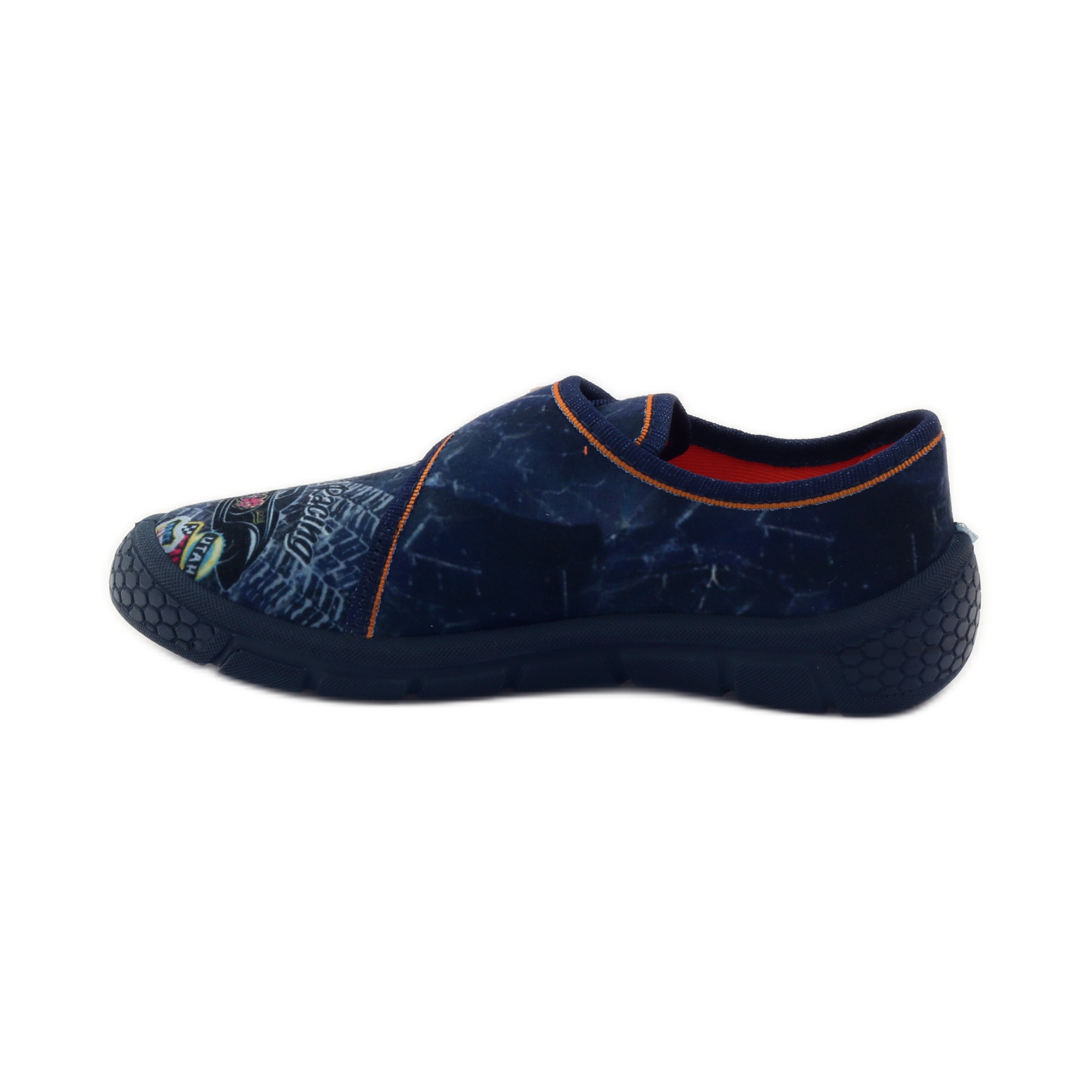 Va prezentam papuci de sport de la firma poloneza Befado, model 537x012, ganditi pentru cei mai tineri. Culoarea lor la modă bleumarin cu o aplicație portocalie atractivă în formă de mașină face ca fiecare copil să se simtă unic și elegant în ei!