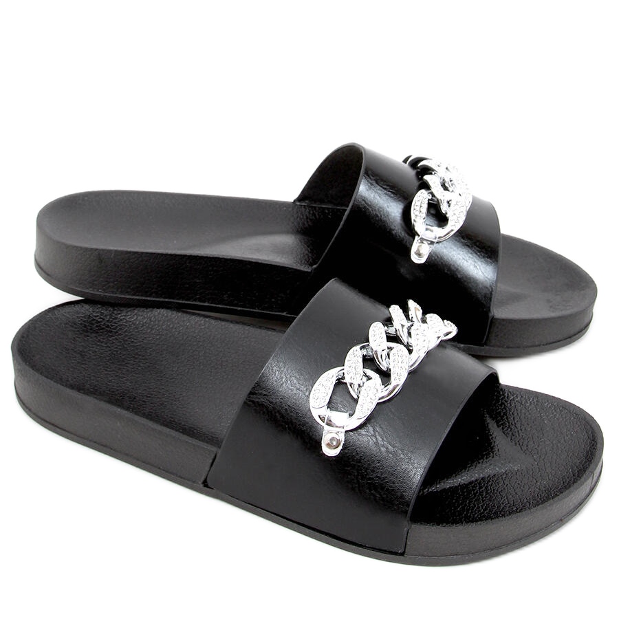 Vă prezentăm șlapii cu lanț Tilia Black - un must-have în acest sezon pentru fiecare femeie la modă! Acești șlapi eleganti și negri se remarcă printr-un lanț elegant decorat cu pietre strălucitoare, care atrage atenția și adaugă un caracter unic oricărui stil. Datorită tocului plat și branțului profilat, sunt confortabile de purtat pe tot parcursul zilei - perfecte pentru utilizarea de zi cu zi!