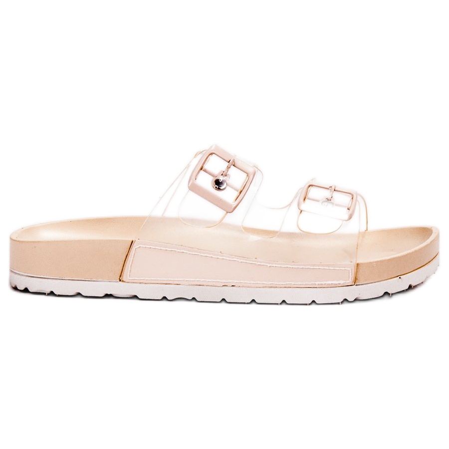Detalii: Ideal Shoes Papuci transparenti cu cataramă maro