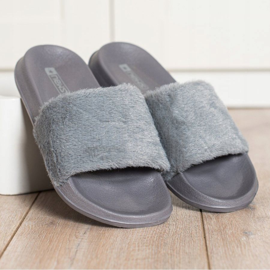 SHELOVET SHELOVET Papuci ușori cu blană gri