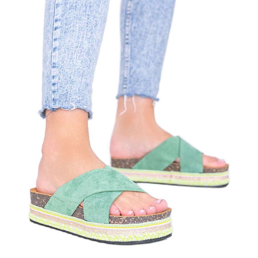 Detalii: Papuci verzi cu talpă decorativă Riri verde