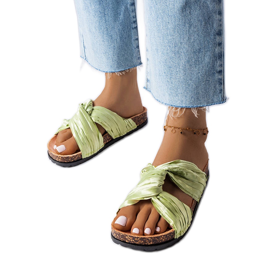 Detalii: Papuci verzi decorati cu stofa Fresne verde