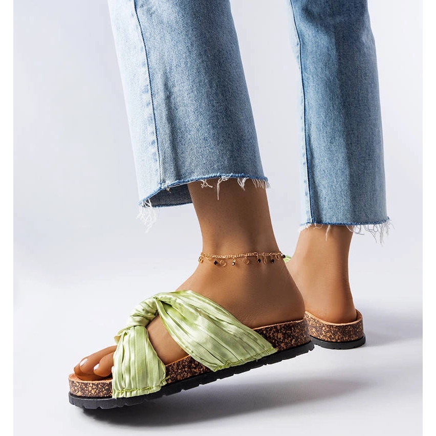 Flip -flop -uri verzi pe platforma decorată cu material Fresne - stil și confort pentru vară