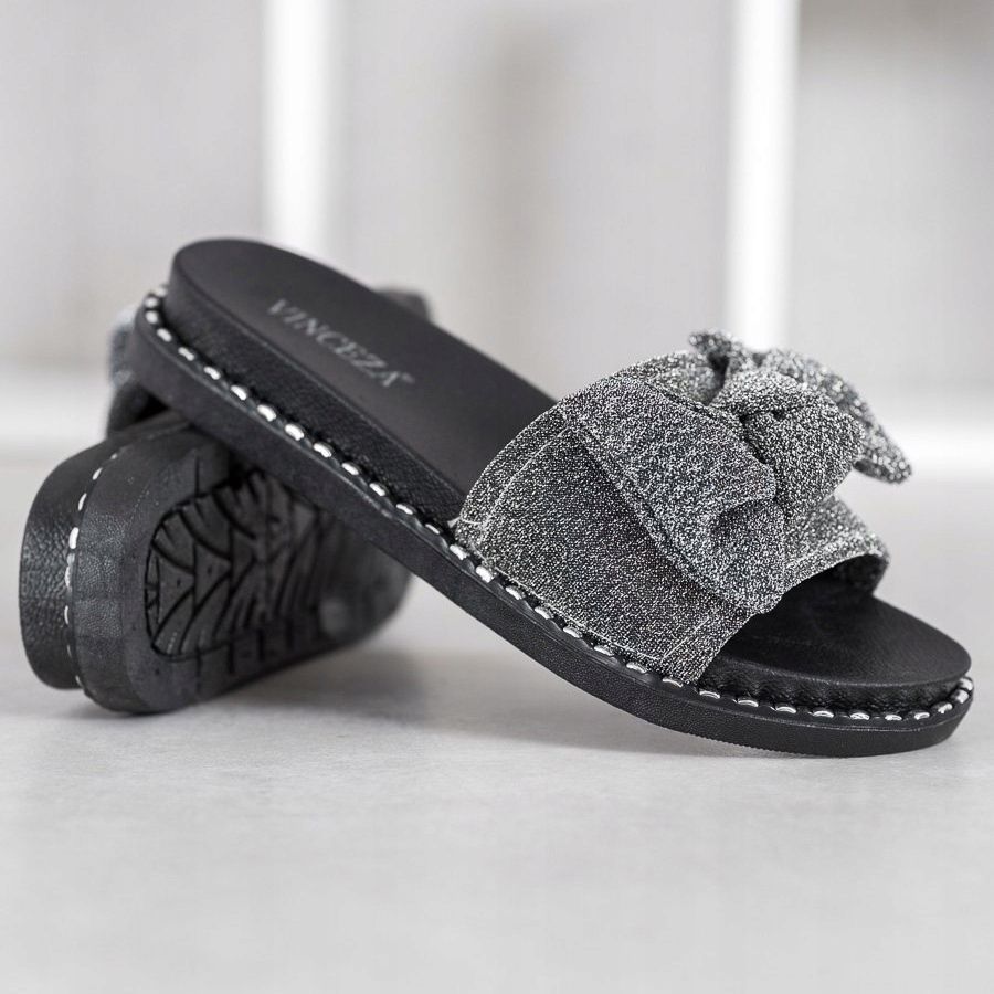 Detalii: Papuci VINCEZA Glitter negru gri