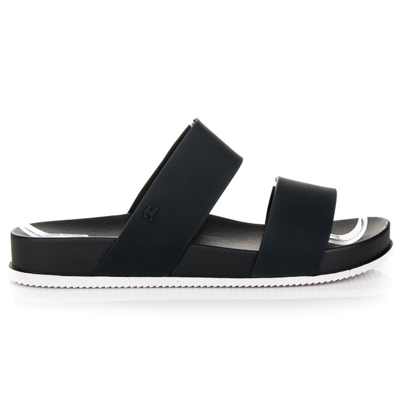 Șlapii Vinceza sunt perfecti pentru stilul de zi cu zi, iar designul lor minimalist negru îi face să se potrivească cu multe ținute de vară. O talpă largă de cauciuc cu benzi de rulare garantează o bună aderență pe diferite suprafețe. Cu o înălțime a platformei de 3 cm, aceste tobogane oferă o ridicare ușoară, menținând în același timp confortul.