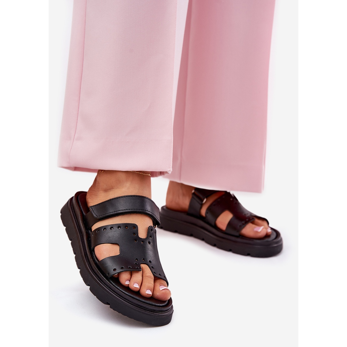 Detalii: Papucii din piele naturală pentru femei pe platforma Zazoo 40440 Negru
