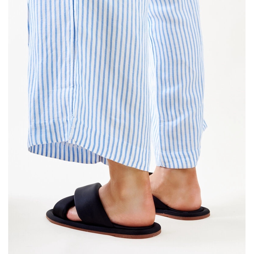 Papucii sunt introduși, ceea ce face mai ușor să se pună și să decoleze, iar culoarea lor neagră minimalistă îi face să se potrivească cu orice stilizare. Fabricat din țesătură de înaltă calitate, cu o talpă de spumă, oferă moale la fiecare pas. Datorită călcâiului cu toc scăzut (1 cm), vă puteți bucura de fiecare pas, fără teamă de disconfort.