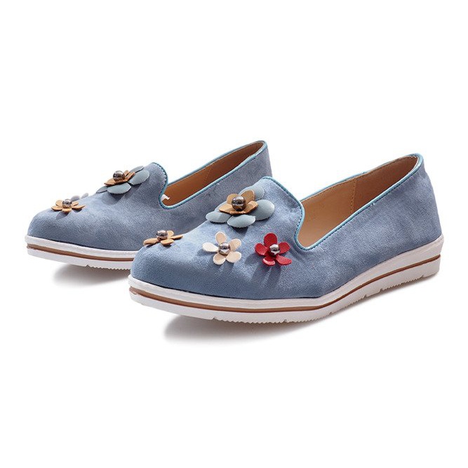 Descoperiți farmecul pantofilor cu pană cu slip-on Multi Flower albaștri, care sunt combinația perfectă de stil și confort. Acești pantofi eleganți, cu o înălțime delicată de pană de 3 cm, sunt confecționați din material asemănător piele de căprioară într-o nuanță frumoasă de albastru. Originalitatea lor este subliniată de florile colorate care adaugă prospețime oricărui stil.