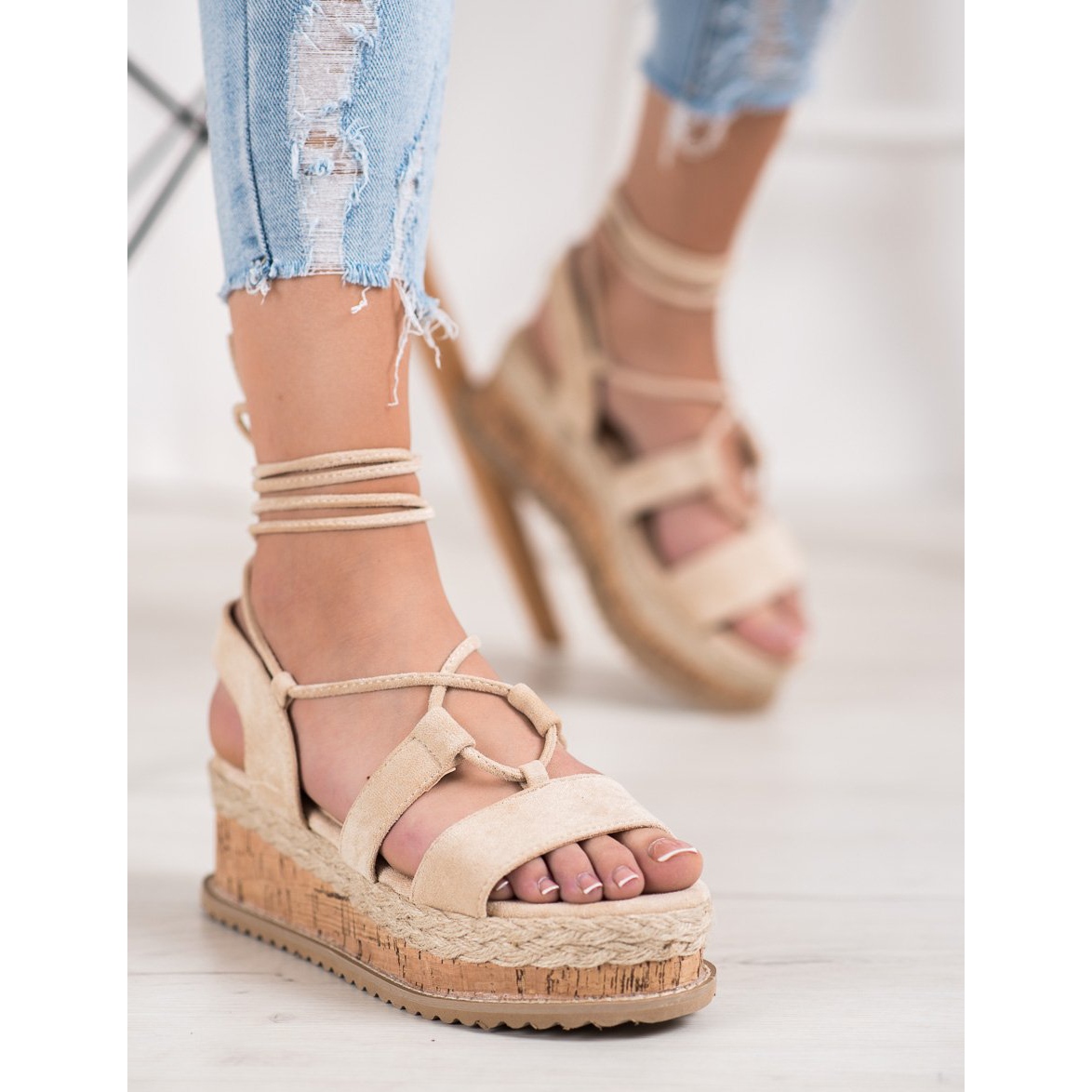 Fabricate din imitație de piele de căprioară de înaltă calitate, Fashion Tied Wedges oferă nu numai un aspect izbitor, ci și confort de purtare datorită pielii naturale din branț. Talpa este realizată din materiale sintetice și călcate, asigurând stabilitate și confort la fiecare pas. Cu o înălțime a tocului de 6,5 cm și o platformă suplimentară de 4 cm, obții efectul dorit de alungire a piciorului, fără a sacrifica confortul.