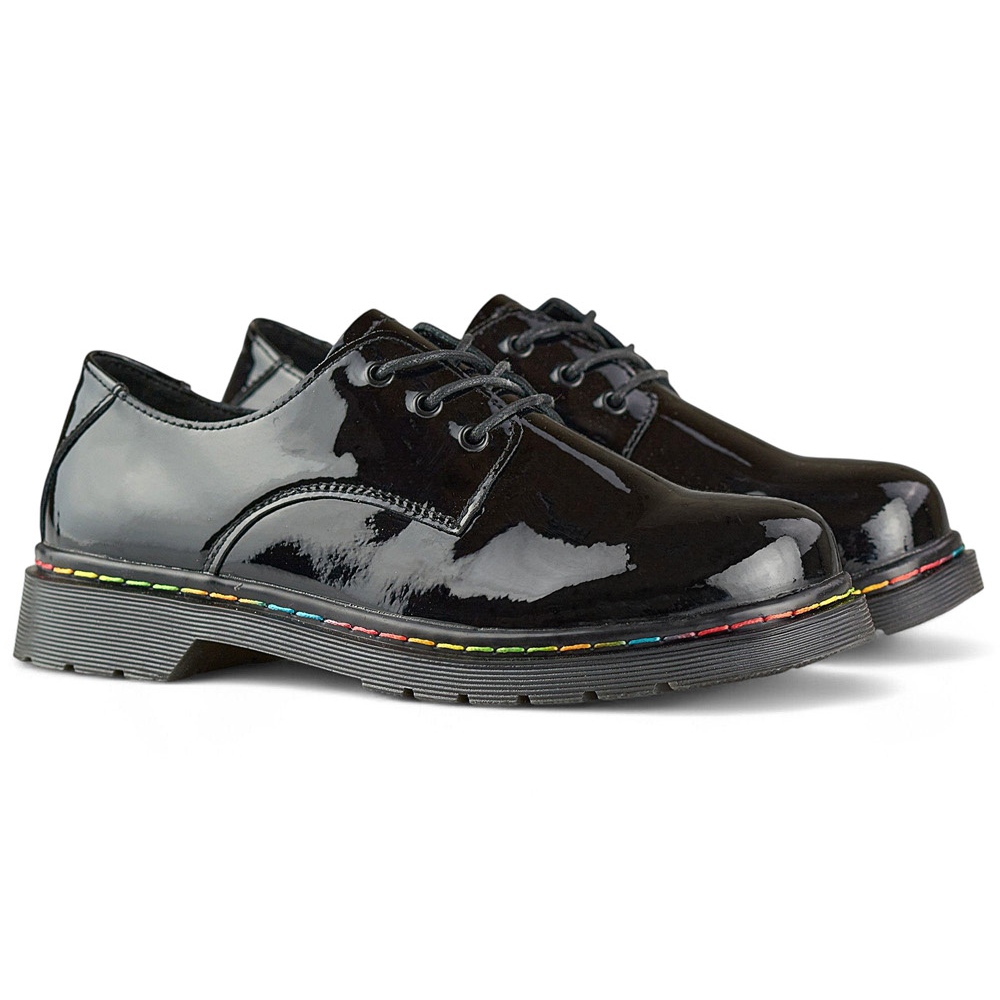 Inna marka Piele de dama neagra lacuita oxford, piele naturala negru